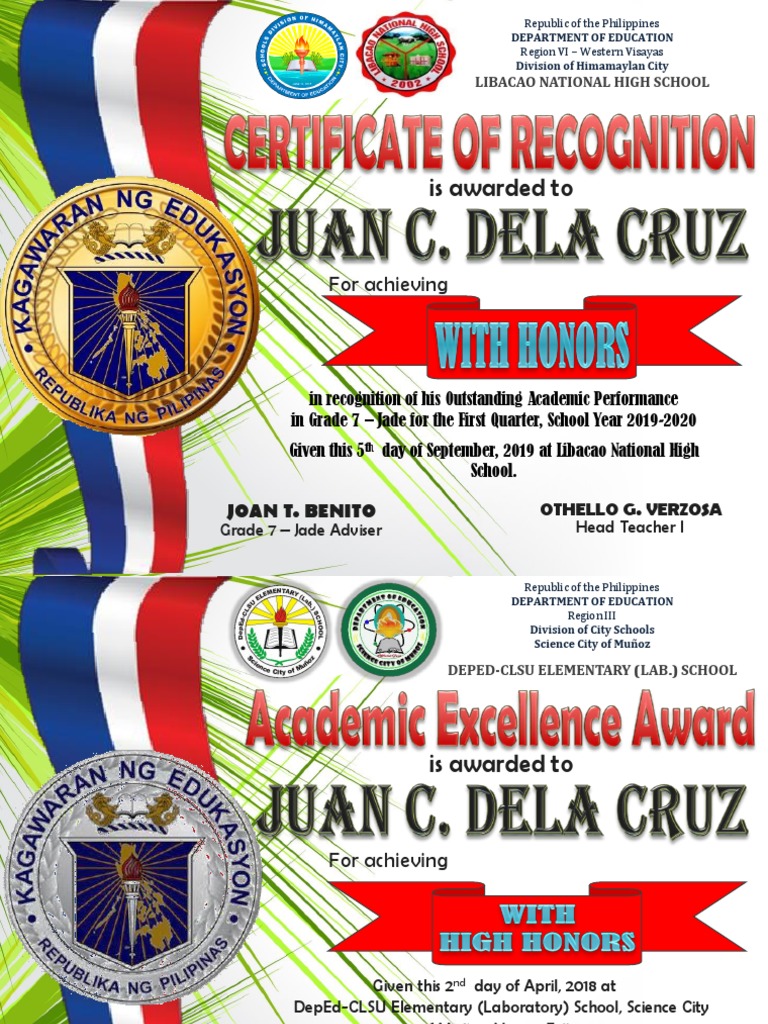 Award Certificates By Sir Tristan Asisi Republic Of The Philippines Department Of Education Division Of Isabela Batangas City East Elementary Course Hero from www.coursehero.com Certificate of recognition portrait with antique vintage ornament frame. 17+ certificate of appreciation templates A certificate of recognition is a great way to recognize various contributions, including an employee or colleague, teacher or student. Certificate of recognition ay ipinagkaloob kay is hereby awarded to. free download computer system servicing files. Certificate of recognition template in modern design. Before you create your certificate of recognition template, you must know its types. Deped cert of recognition template / recognition certificate.